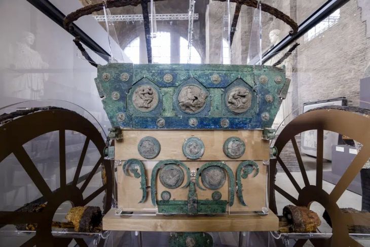 Un carro nupcial de Pompeya reconstruido meticulosamente que eludió a los saqueadores de la ciudad antigua es la estrella de una nueva y ambiciosa exhibición en Roma, que invita a los espectadores a reflexionar sobre las conexiones actuales con las civilizaciones romana y griega clásicas.