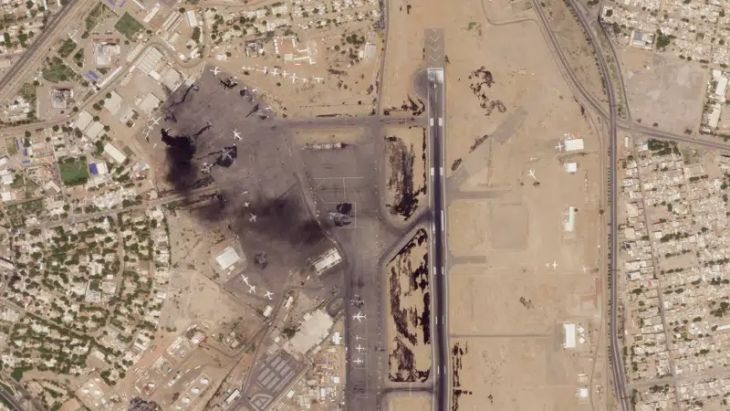 Escucharon explosiones y el sonido de armas pesadas en las inmediaciones del palacio, ubicado en el centro de Jartum, mientras que los aviones de combate continúan sobrevolando el este de Jartum Norte, donde las FAR están posicionadas y se libra una feroz batalla desde ayer.