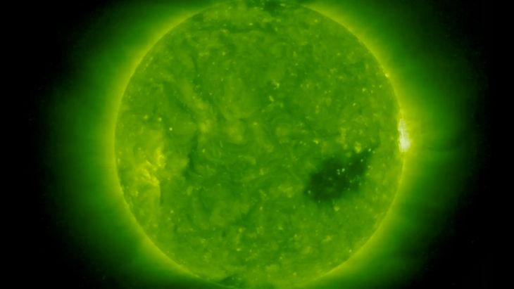 Los agujeros coronales son otro aspecto del Sol que la NASA ha estado observando, y representan las zonas que aparecen mucho más oscuras en las imágenes como resultado de sus características mucho más frías y menos densas.