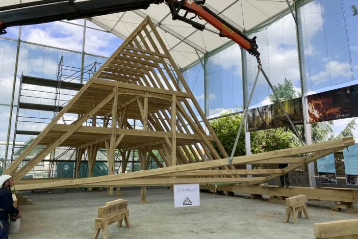 La reconstrucción del tejado alcanzó un hito importante en mayo, cuando se montó gran parte de la nueva estructura de madera en un taller en el valle del Loira, en el oeste de Francia.