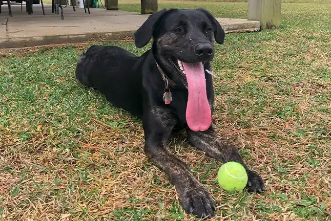La perrita mezcla de labrador y pastor alemán tiene una lengua que mide 12.7 centímetros de largo, lo que supera por mucho el anterior récord que era de 9.49 centímetros.
