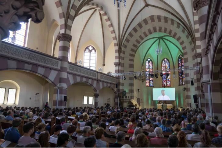 El encuentro de este año se lleva a cabo de miércoles a domingo bajo el lema “Ahora es el momento”. Ese eslogan fue una de las frases que Simmerlein le dio a ChatGPT cuando le pidió al chatbot que desarrollara el sermón.