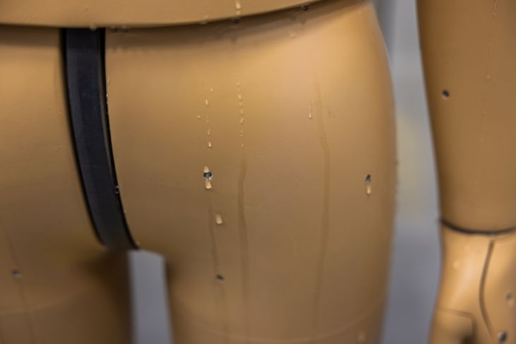 Andi es un maniquí térmico sensible al calor, que tiene la capacidad de sudar por los orificios de su cuerpo y que a través de 35 áreas del cuerpo, registra los datos de las afectaciones de las altas temperaturas en los seres humanos de distintas características.