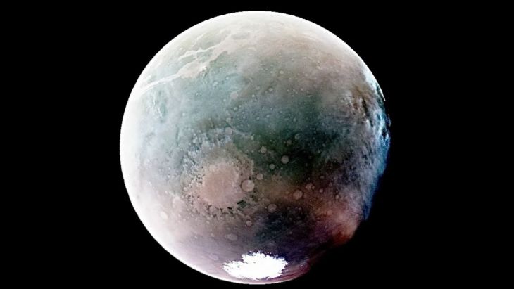 La foto tomada en julio de 2022 muestra el verano en el hemisferio sur del planeta rojo, el periodo en el que Marte está más cerca del Sol. En la foto se puede ver Argyre Planitia, una de las mayores cuencas del planeta formadas por asteroides y llenas de neblina atmosférica, y un gigantesco sistema de cañones, el nublado Valles Marineris.