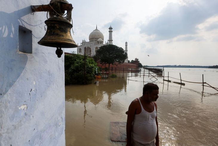 La inundación se acercaba al monumento de mármol blanco del siglo XVII al tiempo que al menos 100 personas murieron en el norte de la India cuando las aguas arrasaron viviendas y puentes y provocaron deslaves.