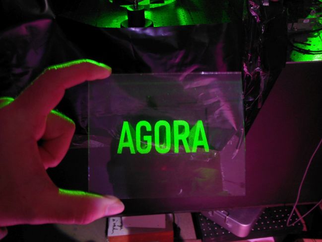 El proyecto consiste en un holograma con la palabra Ágora que, como explicó el artista en una entrevista con EFE, funciona como una estrella potencial, porque "una vez iluminada con un láser, la obra de arte emitirá su contenido visual en forma de luz".
