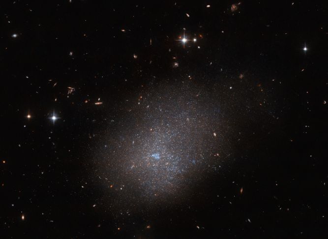 La galaxia ESO 300-16 protagoniza esta imagen del Telescopio Espacial Hubble. A 28,7 millones de años luz en la constelación de Eridanus, parece una nube centelleante.