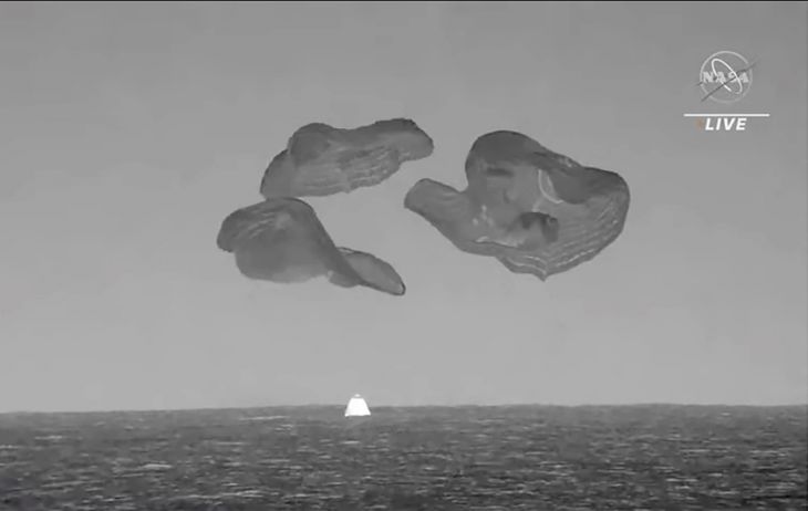 Su cápsula SpaceX se lanzó en paracaídas hacia el Atlántico frente a la costa de Florida.