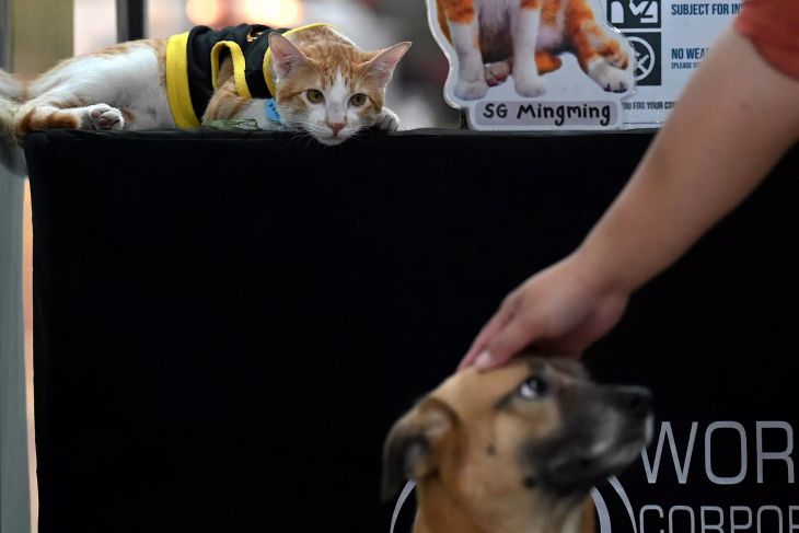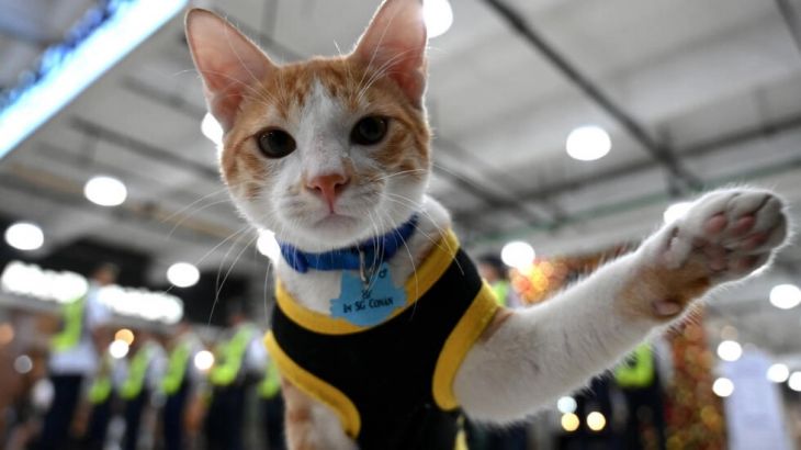 Conan, el cachorro de seis meses, es uno de los afortunados animales que ha sido adoptado por los guardias de seguridad en Manila, la capital filipina, donde miles de gatos viven en las calles.