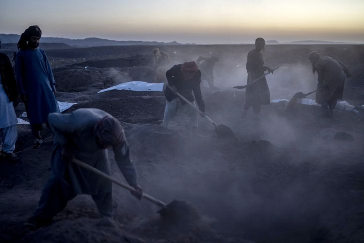 En otras partes de la región, la gente abría tumbas para sus seres queridos fallecidos en el sismo de magnitud 6.3 del sábado. En un campo baldío en el distrito de Zinda Jan, una excavadora retiraba montones de tierra para dejar espacio para una larga fila de sepulturas.