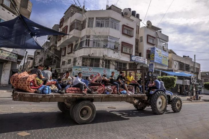 Desde el viernes, miles de habitantes huyen del norte de la Franja, ya sea en remolques, burros, carretas, motocicletas o en auto, abriéndose paso entre los escombros y edificios destruidos.