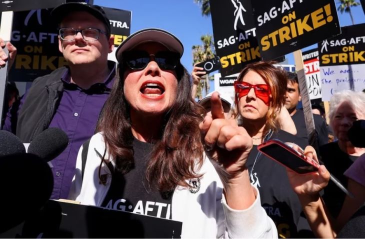 No quieren oír hablar de eso, porque siguen dándonos esta cifra enorme e inflada de cuánto gastan en producción y cuánto pagan a nuestro sindicato en salario. Pero todo está dividido entre tantos miles de personas que no suma nada, excepto aquellos que más ganan, con quienes no tengo ningún problema. También luchamos por ellos con respecto a la inteligencia artificial (IA). Ellos están muy preocupados por el uso de su imagen, la esencia de su ser. Lo que los convierte en estrellas será arrancado y convertido en algo que apenas será reconocible.