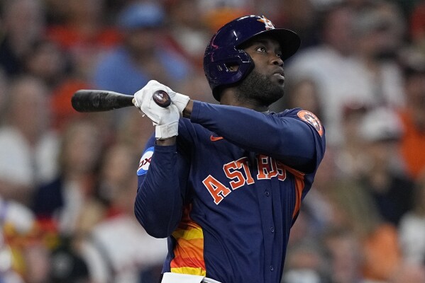 El cubano José Abreu bateó un jonrón de tres carreras justo después de que un elevado de sacrificio de su compatriota Yordan Álvarez rompió un empate, y los Astros de Houston empataron la Serie de Campeonato de la Liga Americana, al arrollar anoche 10-3 a los Vigilantes de Texas.