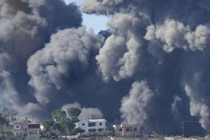 En las afueras de la aldea de Rmeish, en una zona escabrosa de la frontera, un ataque aéreo israelí provocó una espesa nube de humo. A la distancia se escuchaba ruido de cañones.