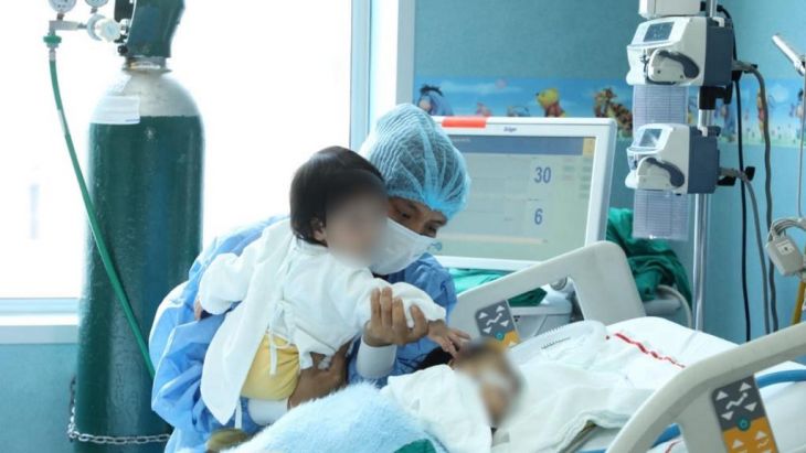 El jefe de Departamento de Emergencia y Cuidados Críticos del Hospital San Bartolomé, Julio César Villa, precisó que los bebés ya llevan 23 días en cuidados post-operatorios.