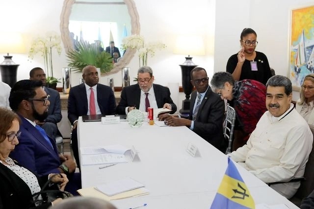 La declaración fue leída por el primer ministro de San Vicente y las Granadinas, y presidente pro tempore de la Celac, país anfitrión de la cita, quien les recibió y estuvo a la cabeza de la mesa, Ralph Gonsalves, tras la reunión del presidente de Venezuela, Nicolás Maduro, y su hómologo de Guyana, Irfaan Ali, en el aeropuerto de Kingstown, junto con representantes de la unión política y económica caribeña Caricom, Brasil, Naciones Unidas y la Comunidad de Estados Latinoamericanos y Caribeños (Celac).