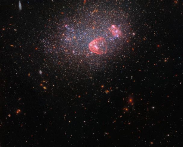 Las estrellas que componen esta reunión celestial se parecen más a una maraña de luces de cadena brillantes que a una galaxia. Se cree que algunas galaxias irregulares se han enredado debido a una actividad interna tumultuosa, mientras que se sabe que otras se formaron por interacciones con galaxias vecinas. El resultado es una clase de galaxias con una amplia gama de tamaños y formas, incluida la dispersión difusa de estrellas que es esta galaxia.