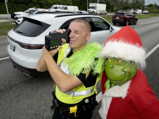 El coronel Lou Caputo, de la oficina del alguacil del condado de Monroe, fiel a una tradición navideña, se volvió a poner el disfraz de Grinch este viernes y, junto a otros agentes, comenzó a observar en el radar la velocidad de los automóviles que pasaban por los alrededores de la escuela primaria de Cayo Largo en la costa sur de Florida.