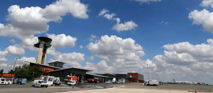Un cordón policial bloquea el acceso al aeropuerto y una hilera de lonas blancas oculta el ventanal del vestíbulo de llegadas, constató un periodista de AFP.