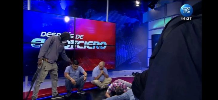 En las imágenes en vivo se observaba a varios encapuchados con armas que mantenían en el piso a trabajadores del canal, a quienes exigían que pidan en directo a la Policía que se retire del lugar.