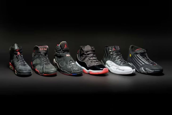 Se trata de seis zapatillas dispares que Jordan había dado al ejecutivo de comunicación de los Chicago Bulls Tim Hallam después de cada uno de otros tantos encuentros decisivos que permitieron al club ganar seis campeonatos de la NBA de 1991 a 1993 y de 1996 a 1998.