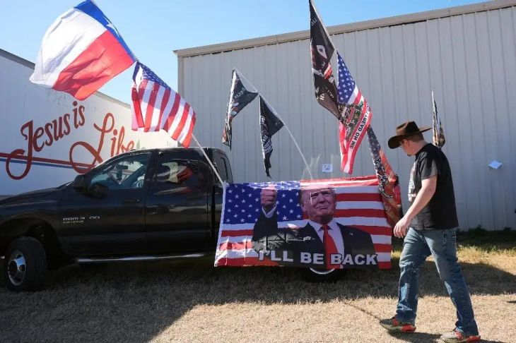 Arriban camionetas con banderas de apoyo al ex mandatario Donald Trump, favorito republicano para las elecciones presidenciales de noviembre, y con lemas de rechazo al gobernante demócrata Joe Biden, quien intentará conseguir un nuevo mandato.