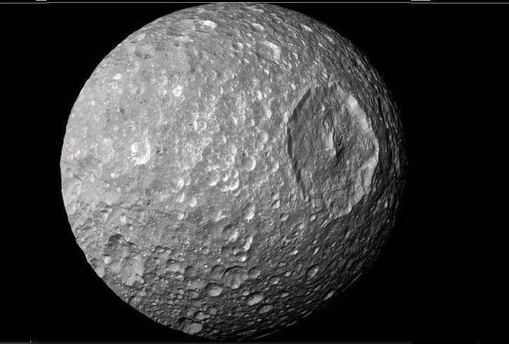 Los astrónomos la comparan con la Estrella de la Muerte de la Guerra de las Galaxias, pero Mimas, una pequeña luna de Saturno, alberga bajo su superficie helada un improbable océano líquido propicio para el surgimiento de la vida, según un estudio publicado este miércoles.