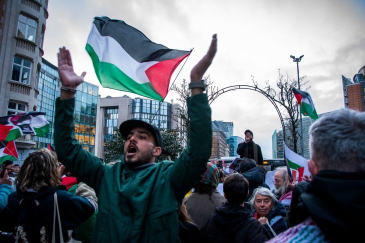 Aproximadamente 300 personas se manifestaron el domingo frente al Parlamento Europeo en la ciudad de Bruselas, exigiendo el cese al fuego en la franja de Gaza y pidiendo la salida inmediata del ejército de Israel de todo el territorio Palestino.