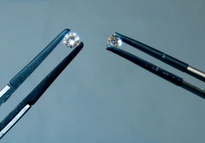 Los diamantes brillan por igual, pero hay diferencias importantes: las gemas naturales extraídas tienen más de mil millones de años, mientras las piedras de laboratorio son nuevas y cuestan menos de la mitad.