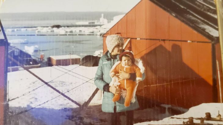 Delgado recordó que poco antes de su nacimiento, su padre, que era miembro de las Fuerzas Armadas, se presentó como voluntario para cumplir con su tercera campaña antártica. Pero ese año fue diferente: las autoridades le ofrecieron viajar junto a su esposa embarazada y sus otros hijos. "Mi madre viajó con cuatro meses de embarazo. Estaba contenta de poder acompañar a mi padre y compartir esas aventuras que mi padre contaba cuando volvía", recordó.