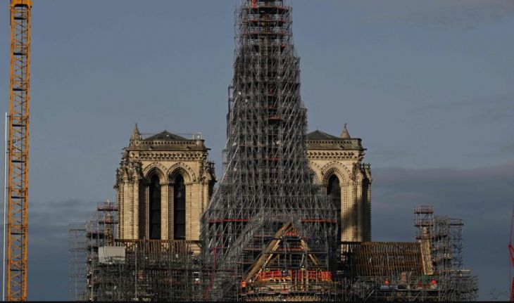 La estructura de madera, al igual que la aguja de la catedral, quedó arrasada en el incendio de abril de 2019 cuyas imágenes transmitidas en directo por televisión provocaron una conmoción global.
