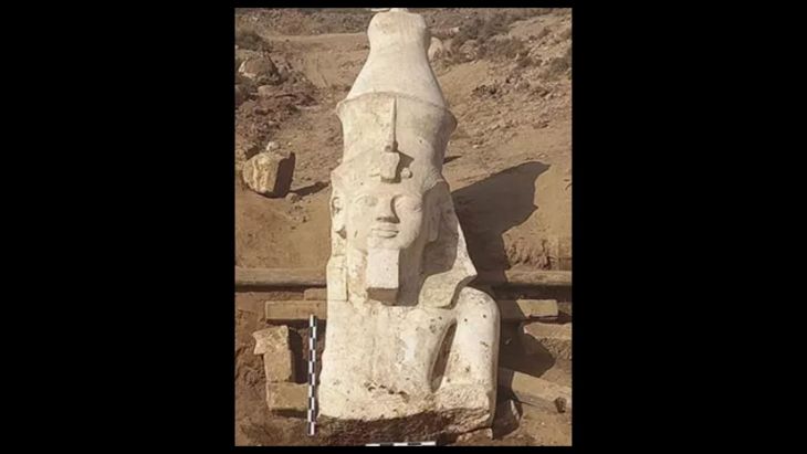 Arqueólogos de Egipto y Estados Unidos descubrieron la parte superior de una enorme estatua del faraón Ramsés II durante las excavaciones realizadas por la misión en la región de Al-Ashmunin.