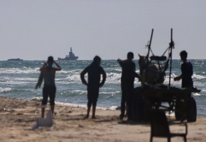 El buque Open Arms, que transportaba 200 toneladas de alimentos, podía verse a lo lejos frente a la playa de la franja costera, hasta donde llegó procedente de Chipre.