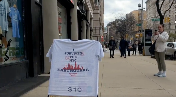 Una tienda de camisetas de Nueva York reaccionó con gran rapidez al sismo de magnitud 4.8 que este viernes se sintió en la ciudad y sacó a la venta, apenas dos horas después del temblor, una prenda con el lema ‘Sobreviví al terremoto de Nueva York’.