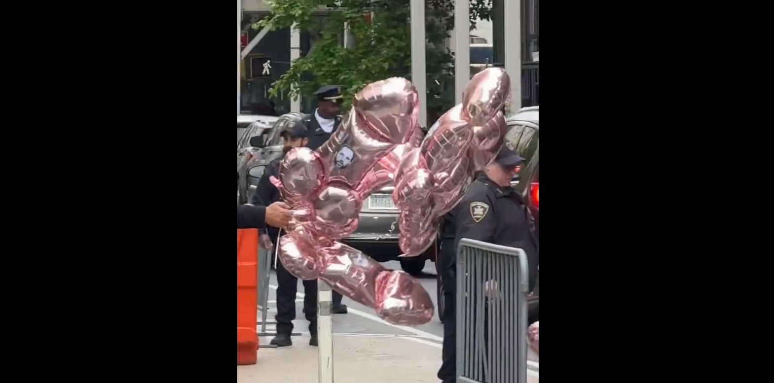 Decenas de grandes globos con forma pene sobrevolaron este jueves las inmediaciones de la corte donde se juzga al ex presidente Donald Trump en Nueva York, lo que movilizó al grupo de policías que prestan vigilancia fuera del edificio.