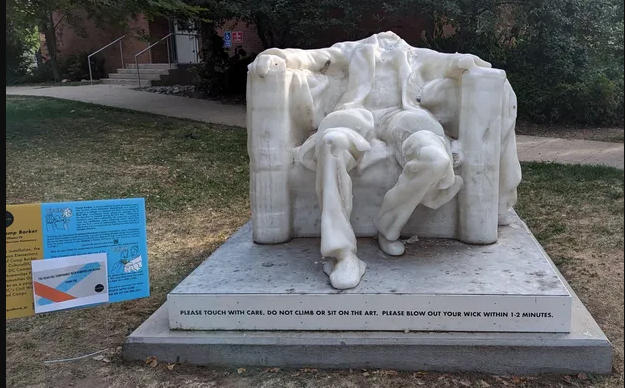 Los termómetros de Washington llegaron el fin de semana a los 100 grados Farenheit (37.7 Celsius), un calor que decapitó a Lincoln, cuya cabeza ha ido derritiéndose poco a poco.