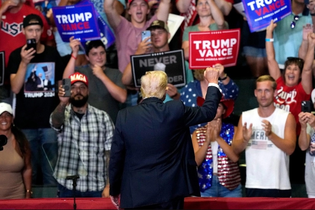 Antes habló su compañero de fórmula, el senador J.D. Vance, originario del vecino estado de Ohio, quien enfiló baterías contra la vicepresidenta Kamala Harris, un nombre que suena para reemplazar la candidatura de Biden si se decide a renunciar.