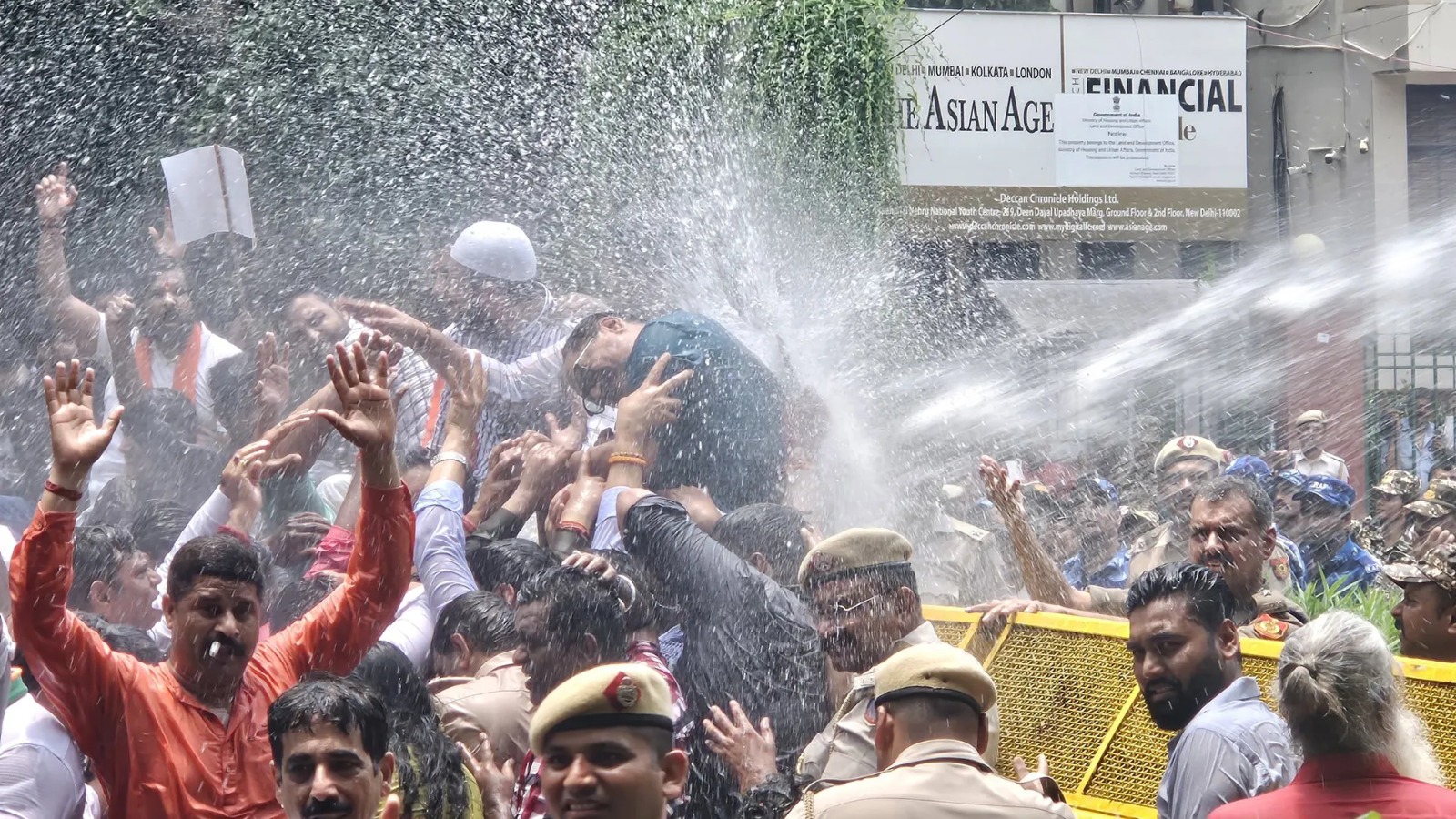 Imágenes difundidas por Sachdeva muestran cómo las fuerzas de seguridad dispersaron a los manifestantes con cañones de agua para acabar con la protesta.
