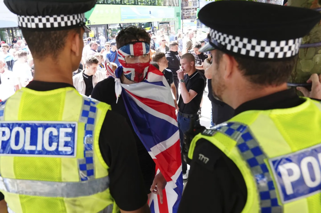 En Liverpool un agente ha recibido un ladrillazo en la cabeza y otro ha sido derribado a patadas cuando se desplazaba en una motocicleta en la ribera de la ciudad. Mientras, varios cientos de antifascistas han coreado lemas como "Los refugiados son bienvenidos aquí" o "Escoria nazi, fuera de nuestras calles".
