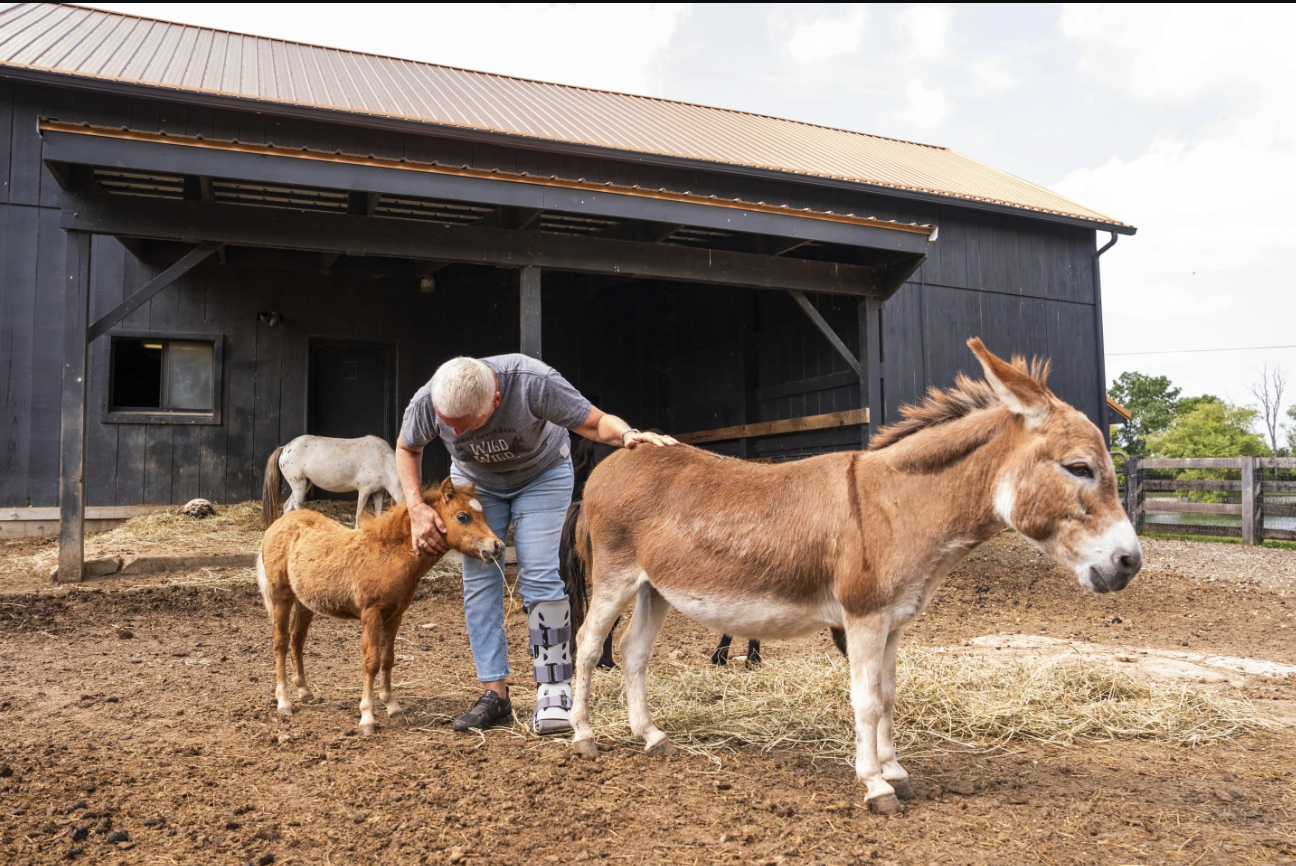 Lisa Moad, propietaria de Seven Oaks Farm en Hamilton, Ohio, tiene 13 caballos miniatura y tres caballos de tamaño normal y dirige una granja de terapia para personas mayores y otras personas. También solía llevar los caballos miniatura a hogares de ancianos y hospitales locales, pero desde la pandemia ha dedicado la mayor parte de su tiempo a realizar capacitaciones en línea para quienes buscan adoptar la misma misión.