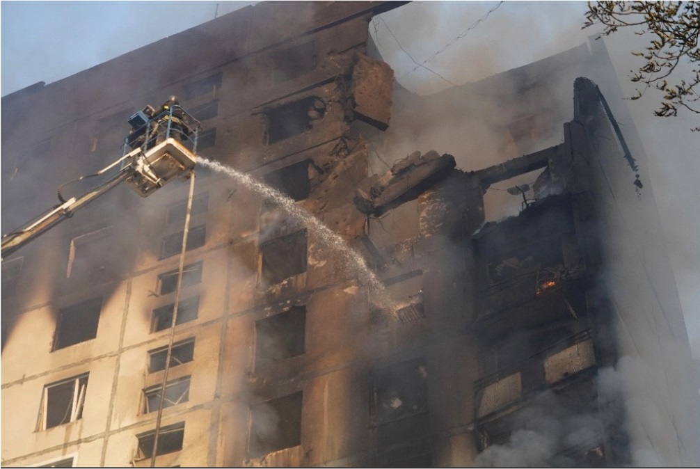 Ihor Terekhov, alcalde de la ciudad, dijo en Telegram que un niño murió en el parque infantil. Tres personas fallecieron en el bloque de departamentos de 12 plantas que se incendió como consecuencia del ataque, añadió.