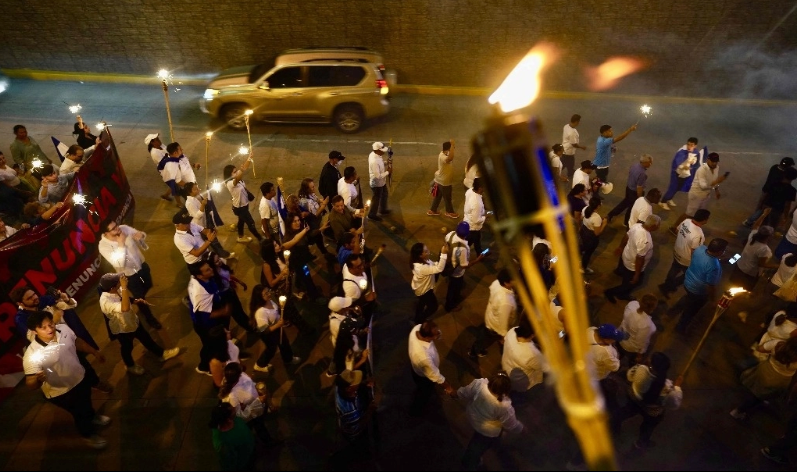 Más de un millar de hondureños se congregaron este viernes en una movilización con antorchas para exigir la renuncia de la presidenta del país, Xiomara Castro, tras la divulgación de un video relacionado con el narcotráfico que involucra a su gobierno, y la restitución del tratado de extradición con Estados Unidos.