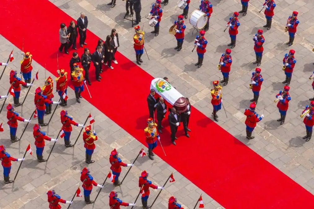 Antes de su traslado a un cementerio del este de Lima, el cuerpo del ex mandatario recibió honores de Estado en el palacio de gobierno.