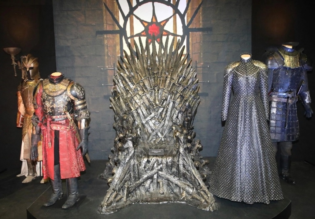 También figura el imponente abrigo blanco de piel que vistió Daenerys Targaryen (Emilia Clarke), así como joyas y otros accesorios diseñados por la galardonada Michele Clapton, junto con armaduras y cascos fabricados por Tommy Dunne.