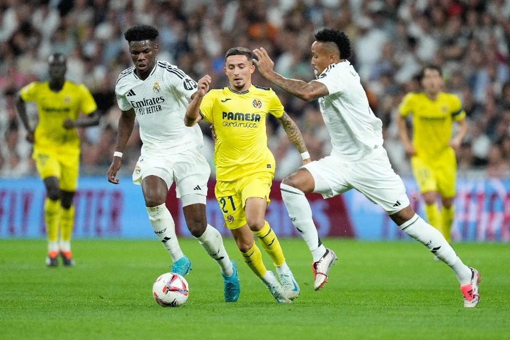 El Real Madrid se impuso 2-0 al Villarreal en la novena fecha de la jornada de Liga en el Santiago Bernabéu y suma los mismos puntos que el Barcelona (21) aunque los azulgrana tienen pendiente el partido del domingo en Vitoria ante el Alavés.