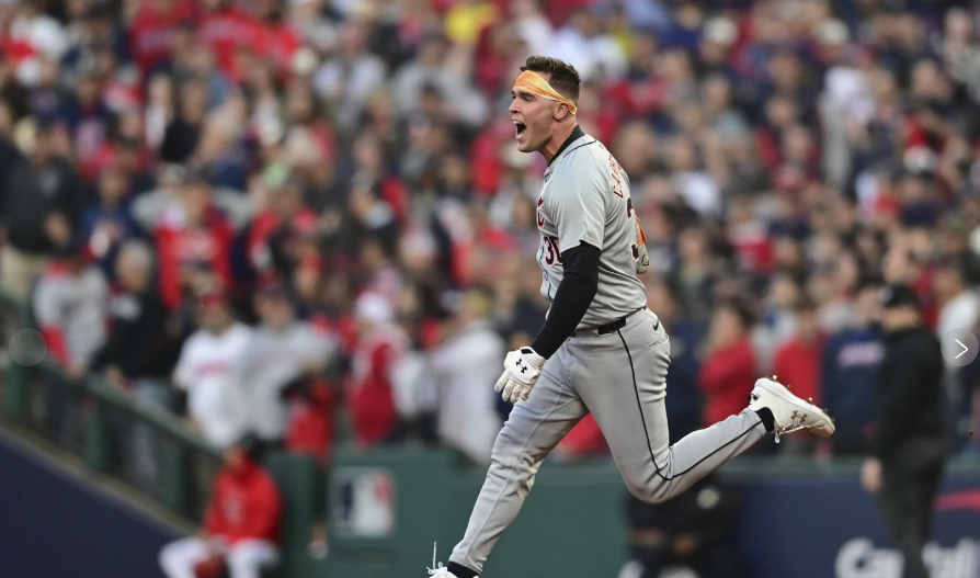Kerry Carpenter bateó un jonrón de tres carreras ante el estelar cerrador Emmanuel Clase en la novena entrada, y Detroit emboscó el lunes 3-0 a los Guardianes para empatar 1-1 la Serie Divisional de la Liga Americana.