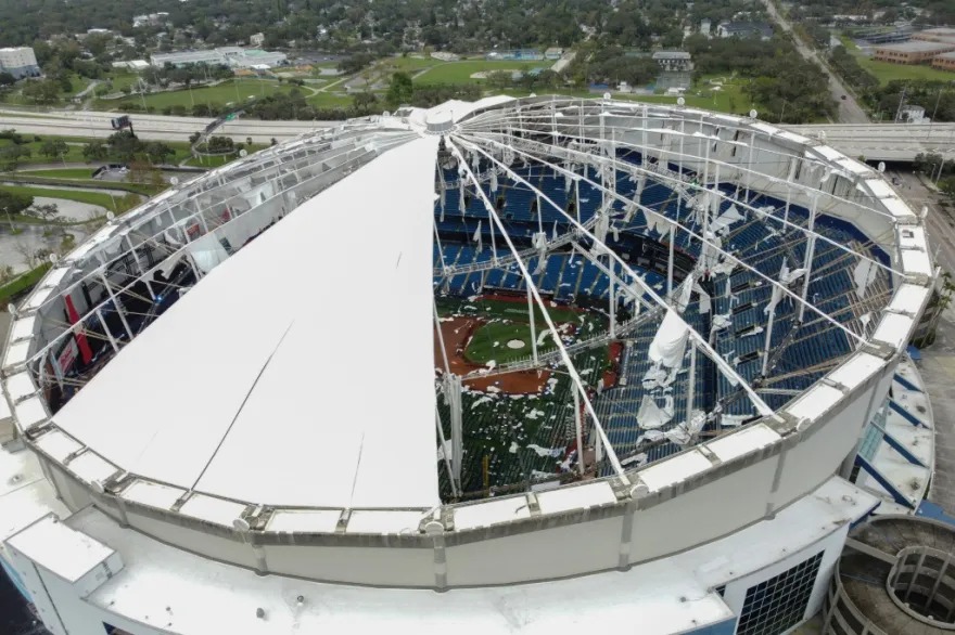 La cubierta del estadio Tropicana Field, sede del equipo de béisbol Tampa Bay Rays, situado en St. Petersburg, quedó totalmente destruida por el embate de los vientos del huracán. El recinto estaba preparado para acoger a personal de emergencias, una vez que Milton pasase por la zona de la bahía de Tampa.