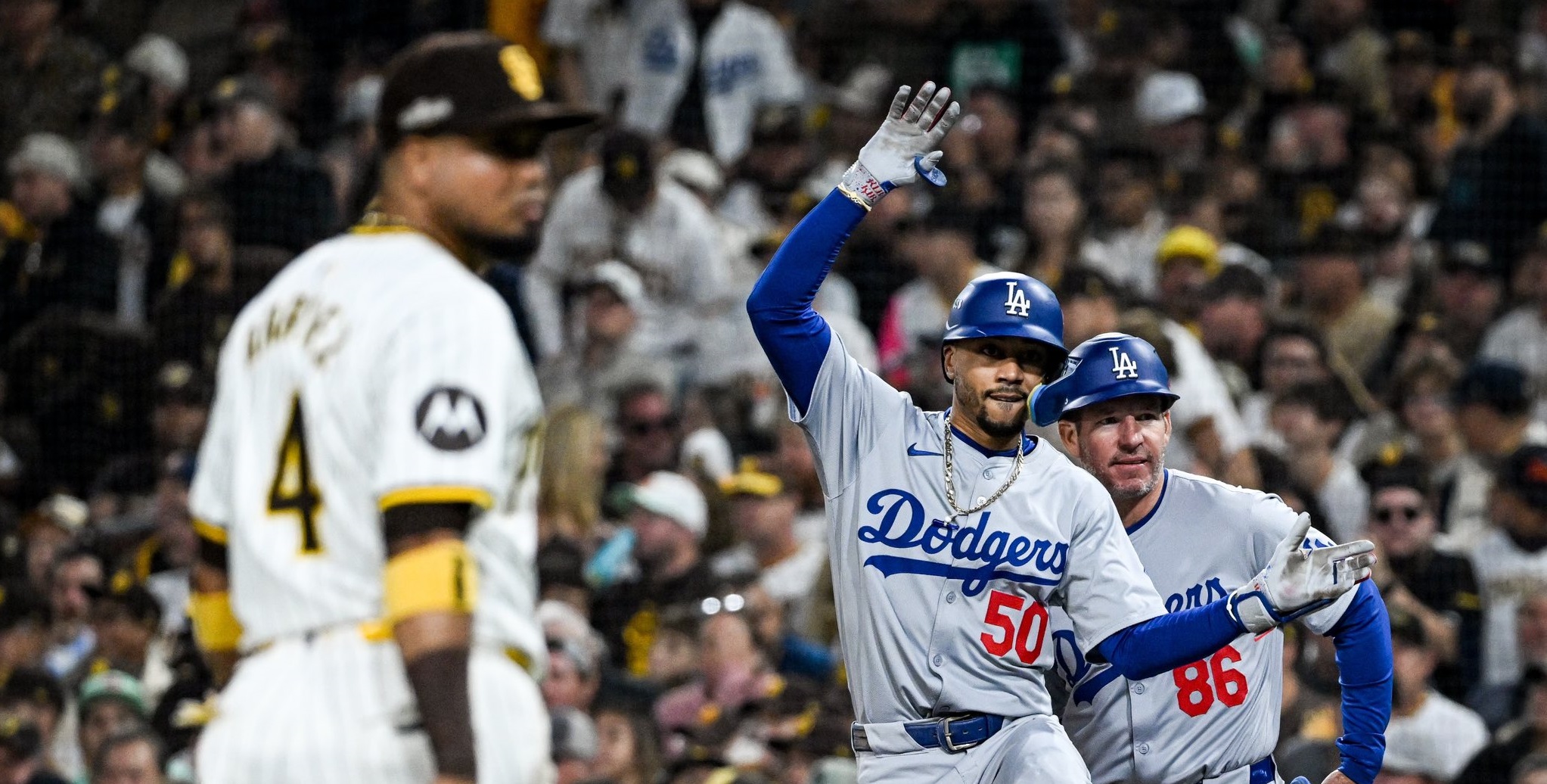 Padres, o en Los Ángeles, frente a los Dodgers. Los angelinos se mantuvieron con vida con un triunfo de 8-0 en el Petco Park el miércoles por la noche. El equipo que dirige Dave Roberts atacó temprano a Dylan Cease, quien abrió con sólo tres días de descanso. Mookie Betts (2) se voló la cerca en el primer acto y Will Smith y Gavin Lux añadieron bambinazos.