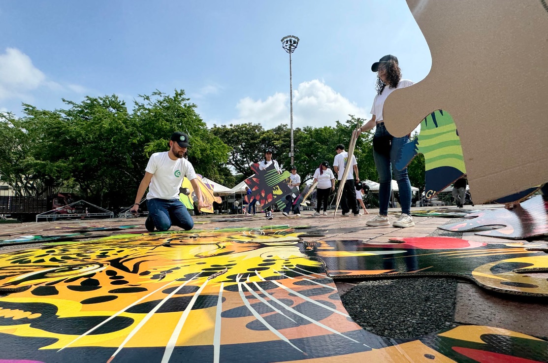 Activistas ambientales construyeron un rompecabezas de 8.5 metros cuadrados en Cali con un mensaje dirigido a quienes participan en la COP16, pidiéndoles "¡Acción por la naturaleza ya!".