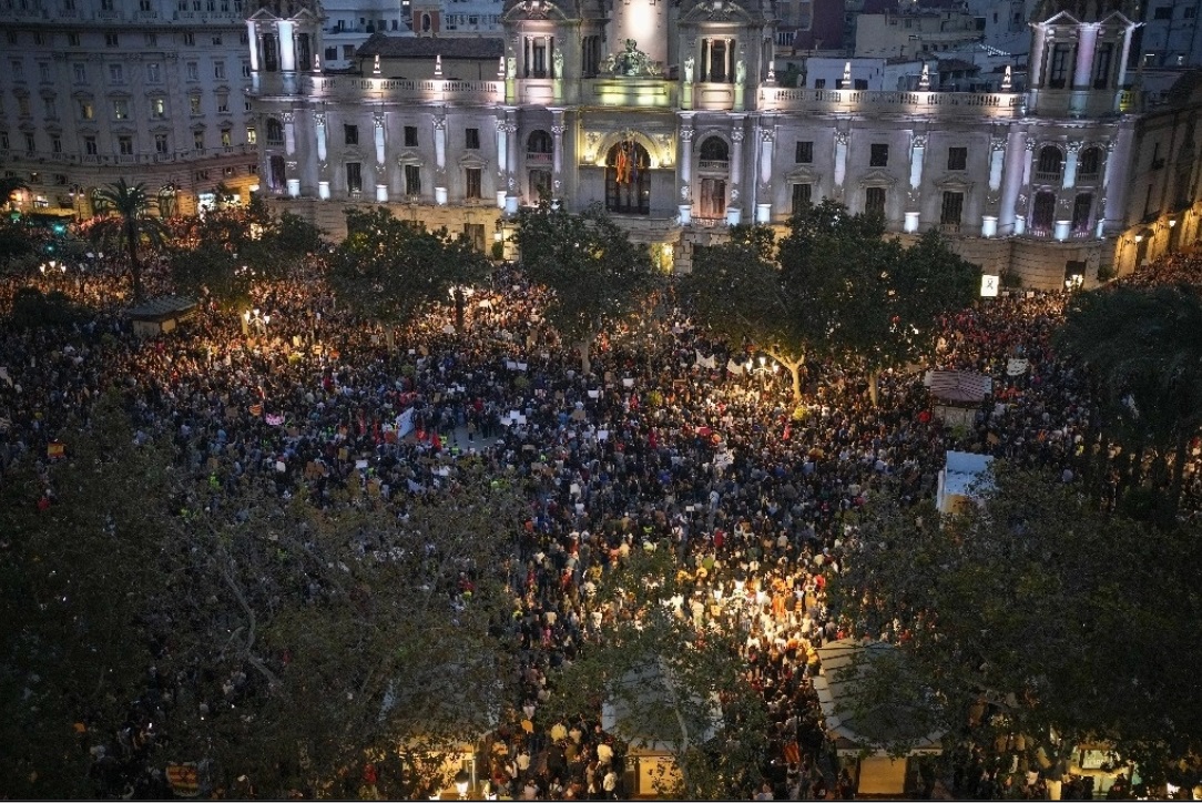 Con gritos de “asesino”, “criminal”, “sinvergüenza” y “Mazón a prisión”, entre otros, miles de personas se manifestaron en el centro de Valencia para denunciar la gestión de la crisis provocada por las lluvias torrenciales por parte del presidente del gobierno autonómico valenciano, el derechista Carlos Mazón. La protesta, convocada por plataformas y asociaciones de la izquierda y el nacionalismo de la región, transcurrió en silencio, sólo roto por las decenas de ciudadanos que exigieron a todo pulmón la dimisión de Mazón y sus principales colaboradores, a los que también tildaron de “ineptos” e “incompetentes”. Durante la marcha también se escucharon algunas críticas a la actuación del Ejecutivo español, presidido por el socialista Pedro Sánchez, con gritos como “Sánchez y Mazón, la misma mierda son”, ya que según numerosos damnificados de las lluvias torrenciales el mandatario español no movilizó a tiempo a los efectivos del Ejército especializados en tareas de emergencias y rescate.